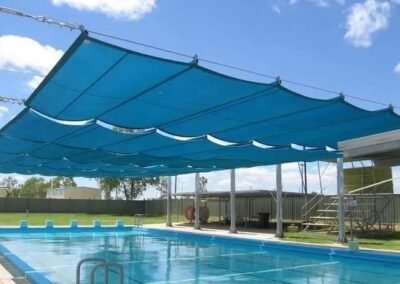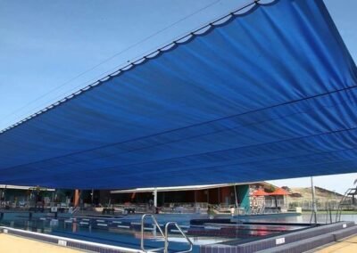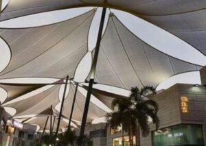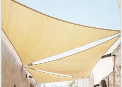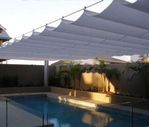 سواتر القماش: تستخدم لتظليل المساحات الكبيرة، وتتوفر بأقمشة مختلفة مثل البولي إيثيلين والبي في سي.