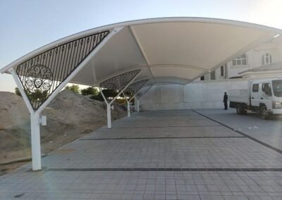 مظلات الحديد: تتميز بالقوة والمتانة، وتناسب الأماكن التي تحتاج إلى حماية أكبر من العوامل الجوية. يمكن تصميمها بأشكال هندسية متنوعة.